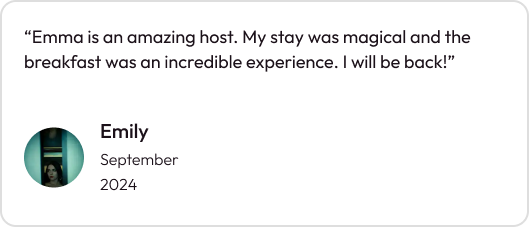 My B&Bs are prepared with fresh and local products : artisanal pastries, seasonal fruits, and regional cheeses. A real moment of flavors and indulgence.